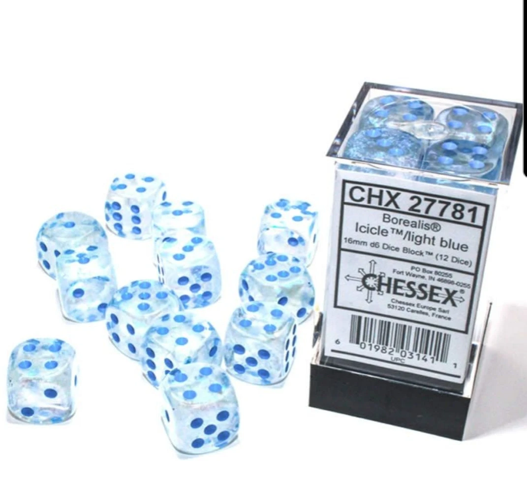 Chessex : 16mm D6 (12 Dice)-die Set Icicle / Light Blue