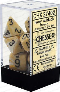 7 polyhedral Marble Dice. High quality Chessex dice sets in an original Chessex plastic container.