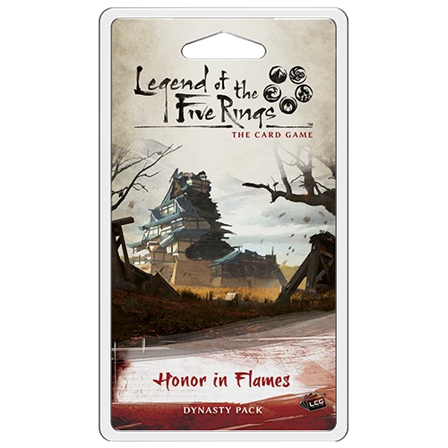 Like other Dynasty Packs of the Temptations cycle, the 60 cards included within the Honor in Flames expansion for Legend of the Five Rings: The Card Game provide new dynasty deck and conflict deck options for each of the seven Great Clans, as well as three new provinces. The honor levels of each clan become more important than ever before, and the new dire keyword lets your characters unlock potent new abilities as they near the end of their time in the spotlight. With the expanding Temptations cycle, what dangers will you face—and what choices will you make?