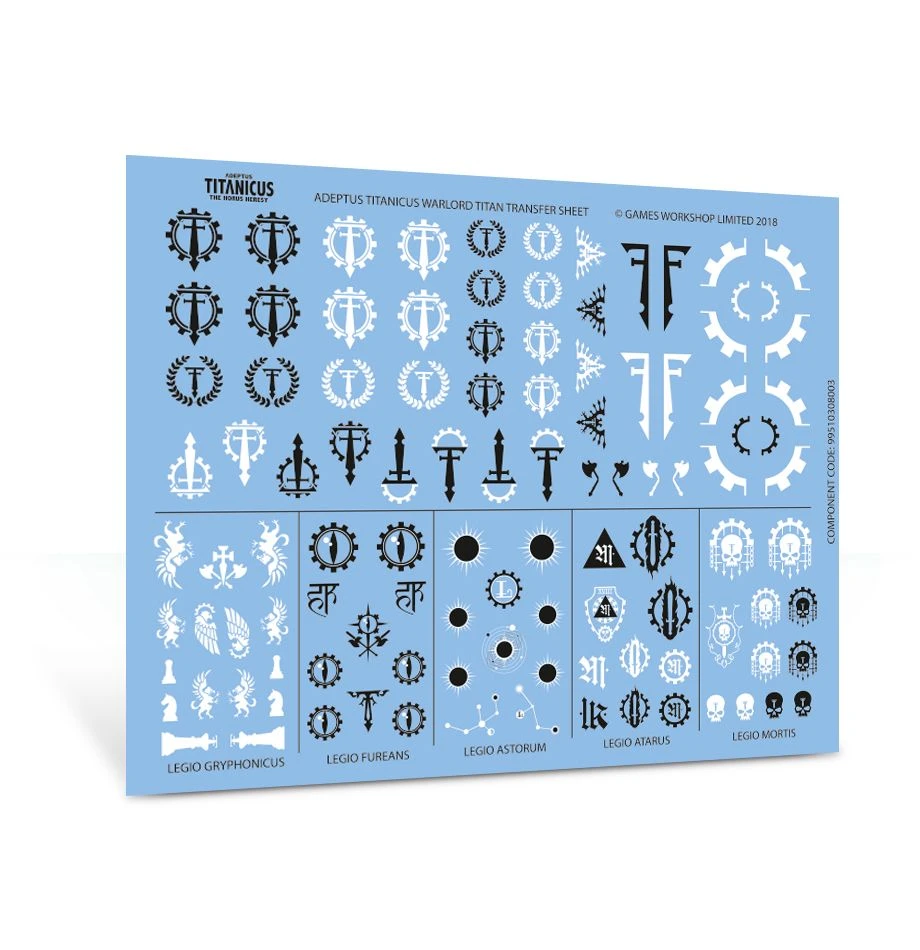 This kit comes as 144 components, and is supplied with a Citadel 120mm Oval base. Included is a transfer sheet with heraldry for the following Legios: Gryphonicus, Fureans, Astorum, Atarus, and Mortis.