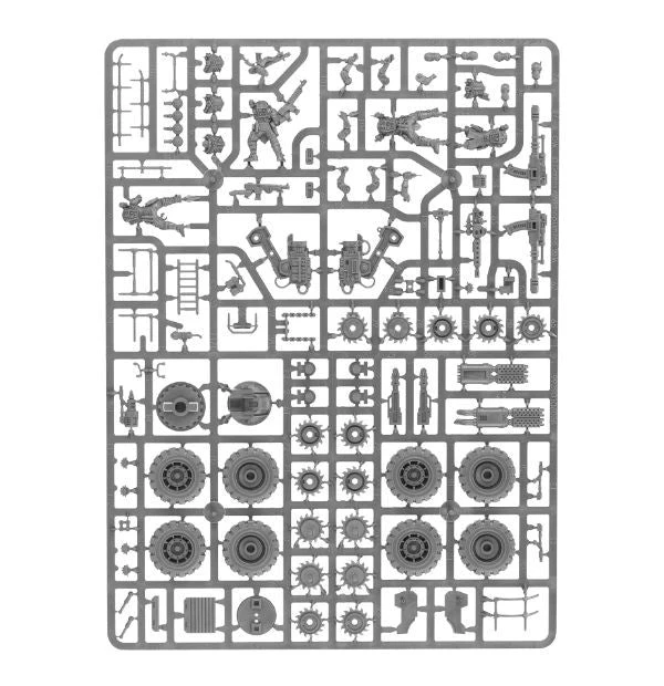 This multi-part plastic kit contains the components necessary to assemble a Goliath Truck, transport and offensive vehicle of the Genestealer Cults. It comes armed with a heavy stubber and twin-linked autocannon, and features a ton of customisation opportunities – the 4 crewmen have their own options and the wheels can be attached with high ground clearance.