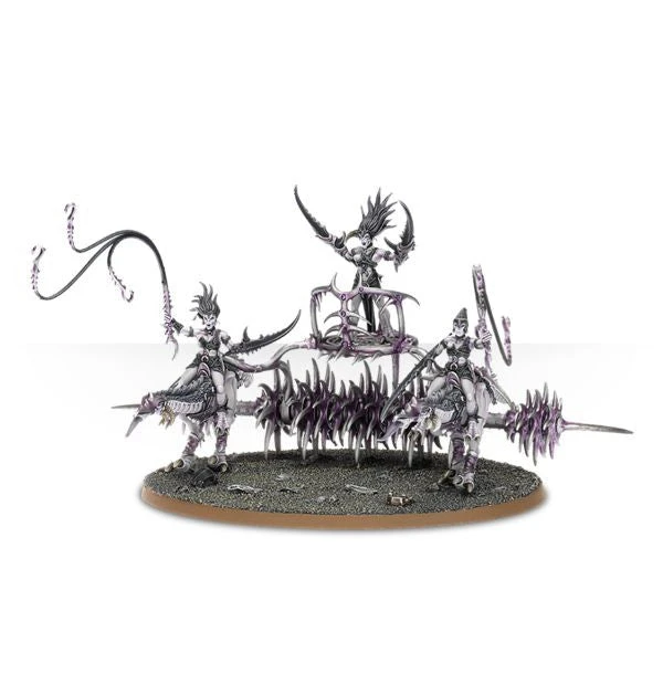 This multi-part plastic boxed set contains 96 components, a large oval base and a 50mm x 100mm monster base, with which to build either a Seeker Chariot of Slaanesh or a Hellflayer of Slaanesh.