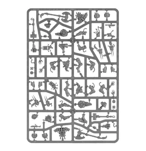 This multi-part plastic kit contains all the components necessary to assemble five Wulfen. These savage beasts can be built with a thunderhammer and storm shield, great frost axe or a pair of frost claws – their backpacks can optionally feature either a grisly trophy rack full of bones or a stormfrag auto launcher. One Wulfen can be assembled as a Pack Leader in a unique pose, with special frost claws, and the box includes numerous decorative pieces to give your Wulfen a unique look.
