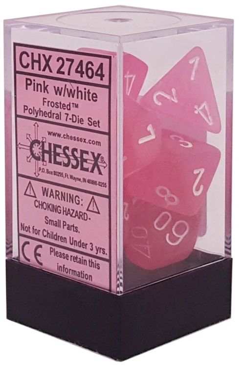7 polyhedral Frosted Dice. High quality Chessex dice sets in an original Chessex plastic container.