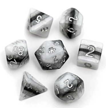 - 7-Die Sets – Contains a d4, d6, d8, d10, d% (00), d12 and a d20.