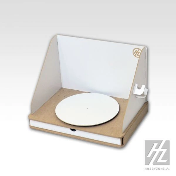 Airbrush Stations minimizes the risk of overspray from airbrush or spray paint in the working area. It consists of a drawer, turntable, airbrush holder and holes for clip holders. The airbrush station is made from MDF (dense particle board) wood that is machine cut (not laser cut) for a precision fit. Wood glue will be needed for assembly. The airbrush station does not include models or accessories, pictures just shows examples of use.