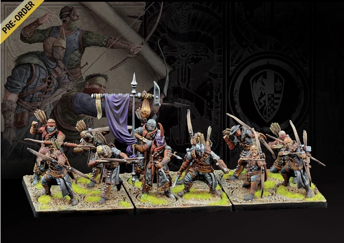 The cornerstone to many a commander’s battleplan, the longbowmen of the Hundred Kingdoms are a tremendous addition to any force. Providing a withering amount of long ranged firepower, these troops fulfill a vital role in the Hundred Kingdoms war machine. Note this product is a dual Kit that allows players to create either the Longbowmen or the Hunter Cadre troop type.