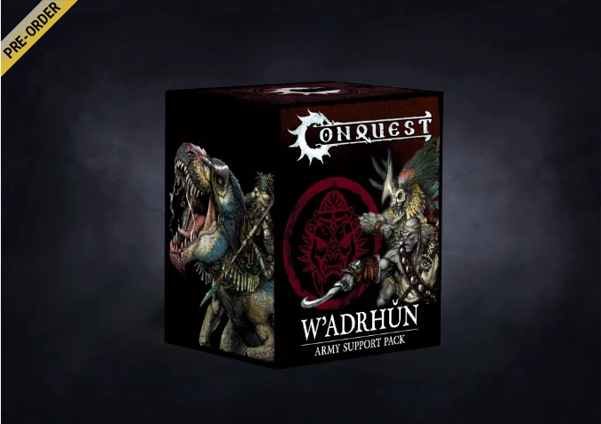 This special W’adrhŭn set includes Secret Objectives as well as all new, individually illustrated, Spell Cards for each spell available to the casters of each faction to serve as memory aids and casting tokens. All of these cards are contained within a beautifully illustrated and faction themed deck box to allow players to keep all of the cards needed to play Conquest in a single, easy to access container.