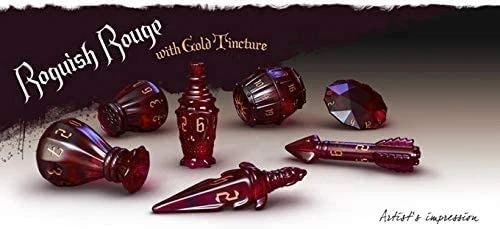 Tabletop Tycoon The Rogue 7-dice Set – Roguish Rouge & Gold Tincture