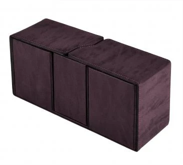 - Bring your most powerful decks to the next game night with the Alcove Vault! The Alcove Vault’s heavy duty construction stores and protects up to three separate decks of cards in Deck Protector sleeves. Two compartments to the left and right of the Alcove Vault can each hold up to 100 sleeved standard size (2.5″ x 3.5″) trading card game cards, and features easy-to-access finger notches to easily remove your decks. The center compartment can hold an additional deck or store dice, tokens, counters and other small gaming accessories. The Alcove Vault’s lids are held secure by powerful magnets and the entire body is wrapped in premium leatherette material. The Suede line is available in Jet black, Sapphire blue and Ruby red styles.