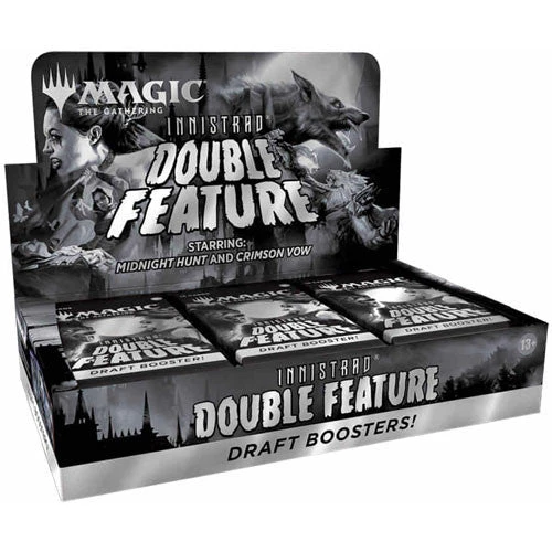Experience the ultimate horror crossover of Innistrad: Midnight Hunt and Innistrad: Crimson Vow. Every card brings chills and thrills with special frames and black-and-white art you can only find here! Inside each booster pack, you’ll find two Rare and/or Mythic Rare cards, one from each set, plus one Silver Screen Foil card of any rarity.