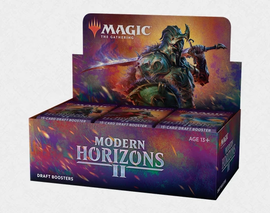 The Modern Horizons 2 Draft Booster Box contains 36 Modern Horizons 2 Draft Boosters (540 cards total). Each Draft Booster contains 15 Magic cards and 1 token or ad card, with a combination of 1–2 Rare or Mythic Rares, 3–4 Uncommons, and 10 Common cards. A traditional foil card of any rarity replaces a Common in 33% of Modern Horizons 2 Draft Boosters. Traditional foil Retro-Frame Fetch Land in less than 1% of boosters.