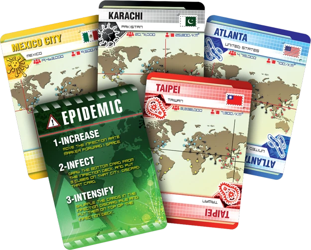 You and your teammates will travel across the globe, treating infections while finding resources for cures. You must work as a team to succeed. Pandemic is a cooperative game, all players win or lose together.